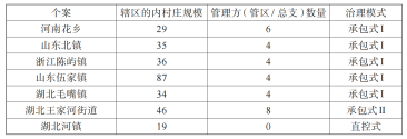 表2是采用不同分权模式的乡镇所辖村庄的规模比较。从表2中可以看出,无论是采取承包式Ⅰ还是承包式Ⅱ治理模式的乡镇,一个共同的特征就是所辖村庄数量甚多,导致乡镇政府治理时所需应对的对象过多,治理负荷过大。对此,王家河街道党委书记强调管区与总支在其治理中的重要性时曾讲: