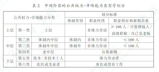 在此基础上,其他学者拓展了这种阶层测量方式,关注以资源占有为基础的权力关系,通过职业背后代表的权力和自主性定义对中国的阶层进行测量,通过实证研究将我国的中间阶层分为老中间阶层、内源型新中间阶层、外生型新中间阶层和边缘中间阶层四个类型。