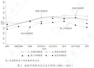 (一)中国城镇地区中间阶层的总体变迁趋势(2003-2021)