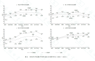 图6 体制内外城镇中间阶层变迁趋势对比(2003-2021)