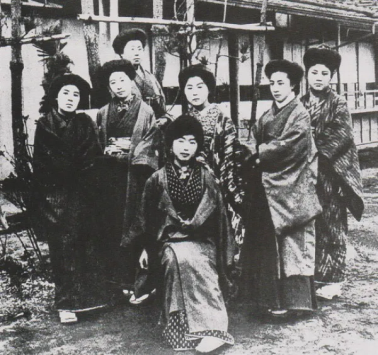 女性运动先驱“《青鞜》社”成员合影,载《青鞜》明治四十五年(1912年)二月刊,右二为平塚雷鸟。图片来源:澎湃新闻。
