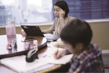 一边工作一边带孩子的母亲。图片来源:新民网。