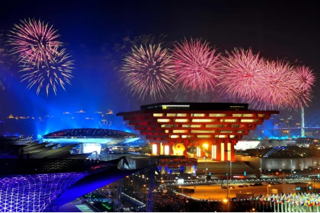 2010年上海世博会开幕式灯光焰火表演。图片来源:中华人民共和国国史网。