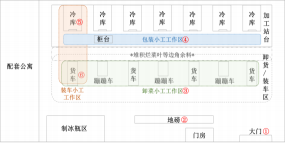 菜库平面结构示意图(*红色数字序号指蔬菜在菜库中经历的流程)。
