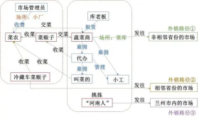 菜库及相关方的人物关系及三条蔬菜外销路径。