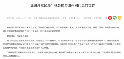 温州阀门业受到县里的政策倾斜和税收优惠,图为温州开发区局相关声明。