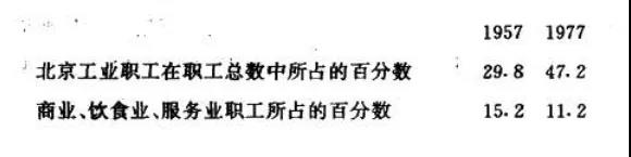 表1:1957-1977北京工业职工和商业饮食业服务业职工所占比例