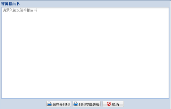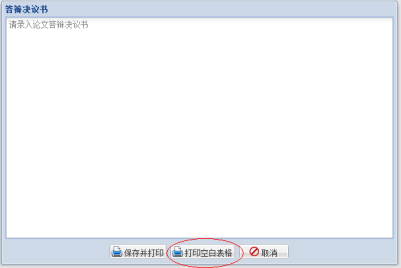 也可事先从学生系统打印空白“答辩委员会决议书”,供现场记录和签字,之后再将有关内容录入系统。将有关内容套打至内容空白“答辩委员会决议书”。
