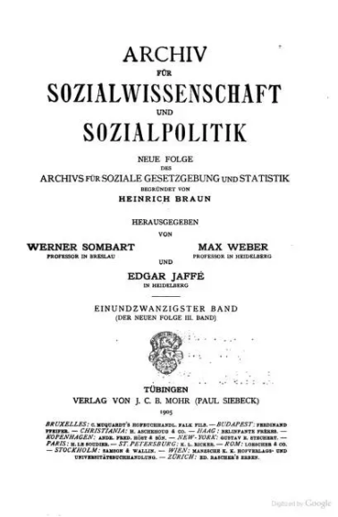 《文庫》(Archiv für Soyialwissenschaft und Soyialpolitik),來源:Internet Archive。
