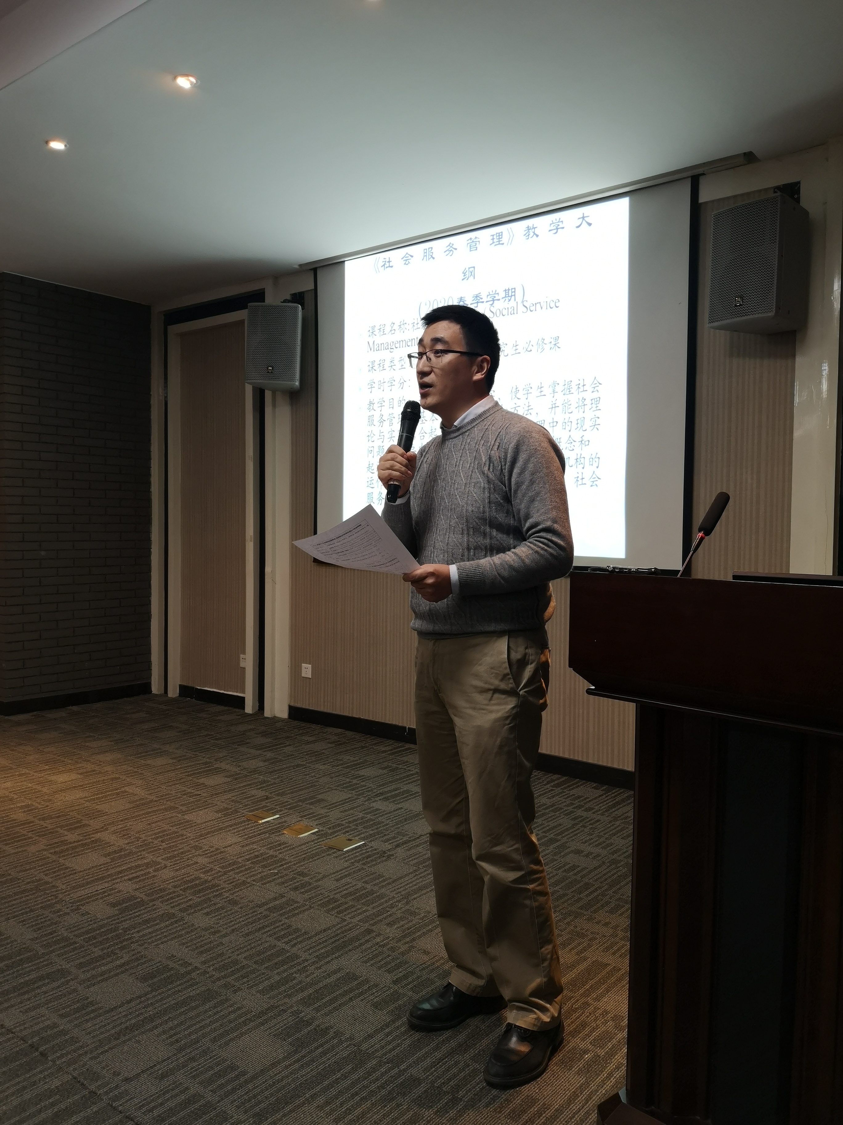 熊跃根教授介绍了本科生《社会工作概论》的课程内容,他重点强调了增强学生在社会福利发展历史、理论流派、方法与过程等相关知识基础。对于研究生《社会政策分析》课程,熊老师指出应加强理论实践相结合,对标国际,立足本土,培养学生社会政策分析、研究能力及政策倡导能力。