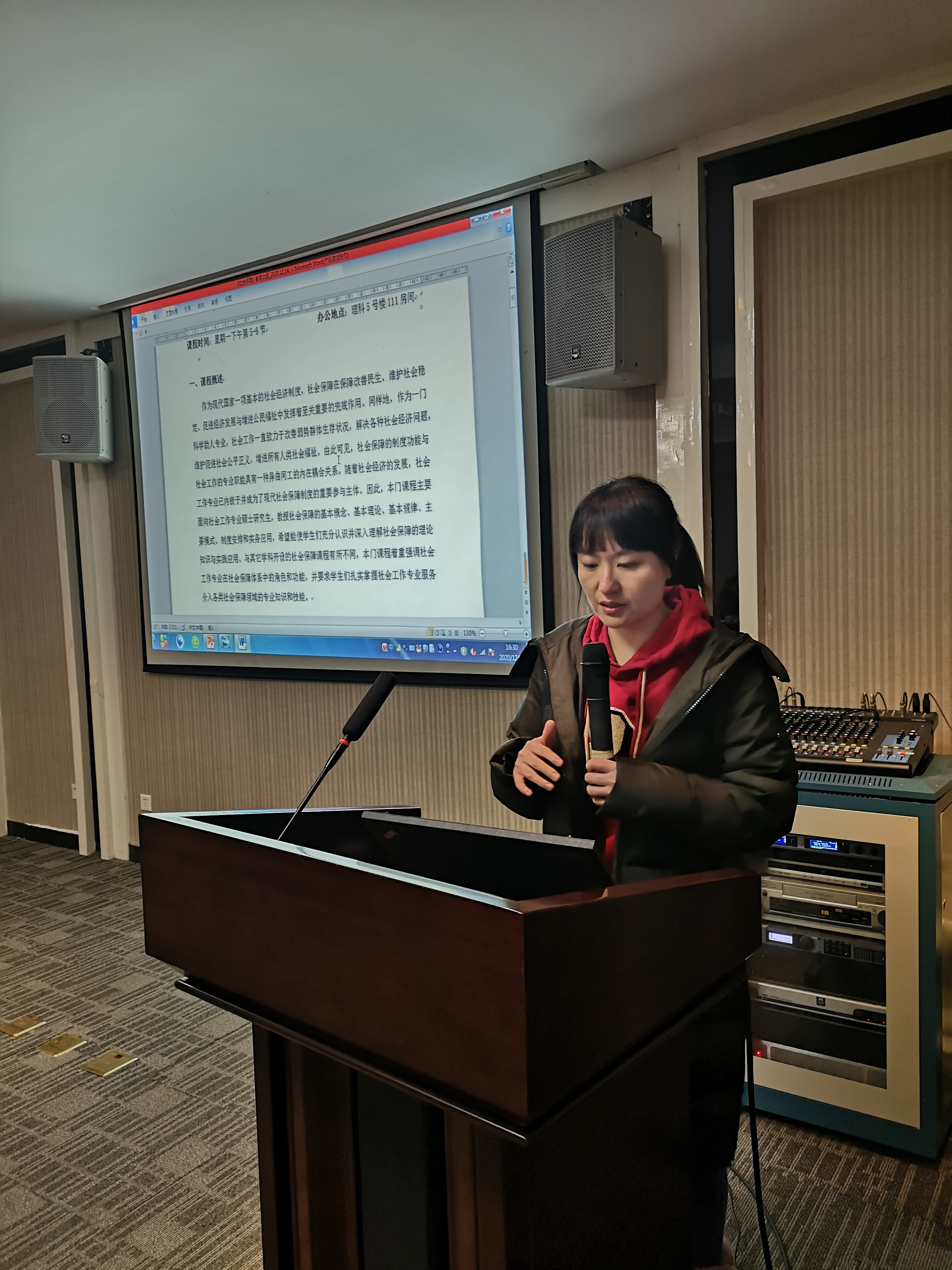 陈海萍助理教授介绍了下学期将为研究生开设的《社会保障专题》课程大纲设计,指出应强化学生对于不同领域社会保障理论和方法的知识掌握。下学期陈老师还将开设《社会工作实践研究》课程,将会着重于社会工作研究基础知识、现有实践研究解析等相关内容。