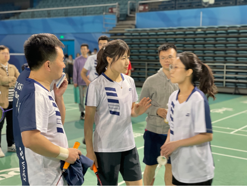 三四名决赛对战城环,联队成员在排阵时已逐渐沉稳,不慌不忙。混双由王牌组合陈得春和法翠雯出战,两位队员充分贯彻思路,以21:19和22:20的成绩2:0先获1分,随后陈得春兼项男单2:0再次轻松带走比赛。但是男双和女单也再次被对方拼下,压力又双叒叕来到了女双身上。这一次,代颖和谭心怡组合的女双强势回归,以2:0的比分毫无悬念赢下女双。教育社会联队3:2胜城环。