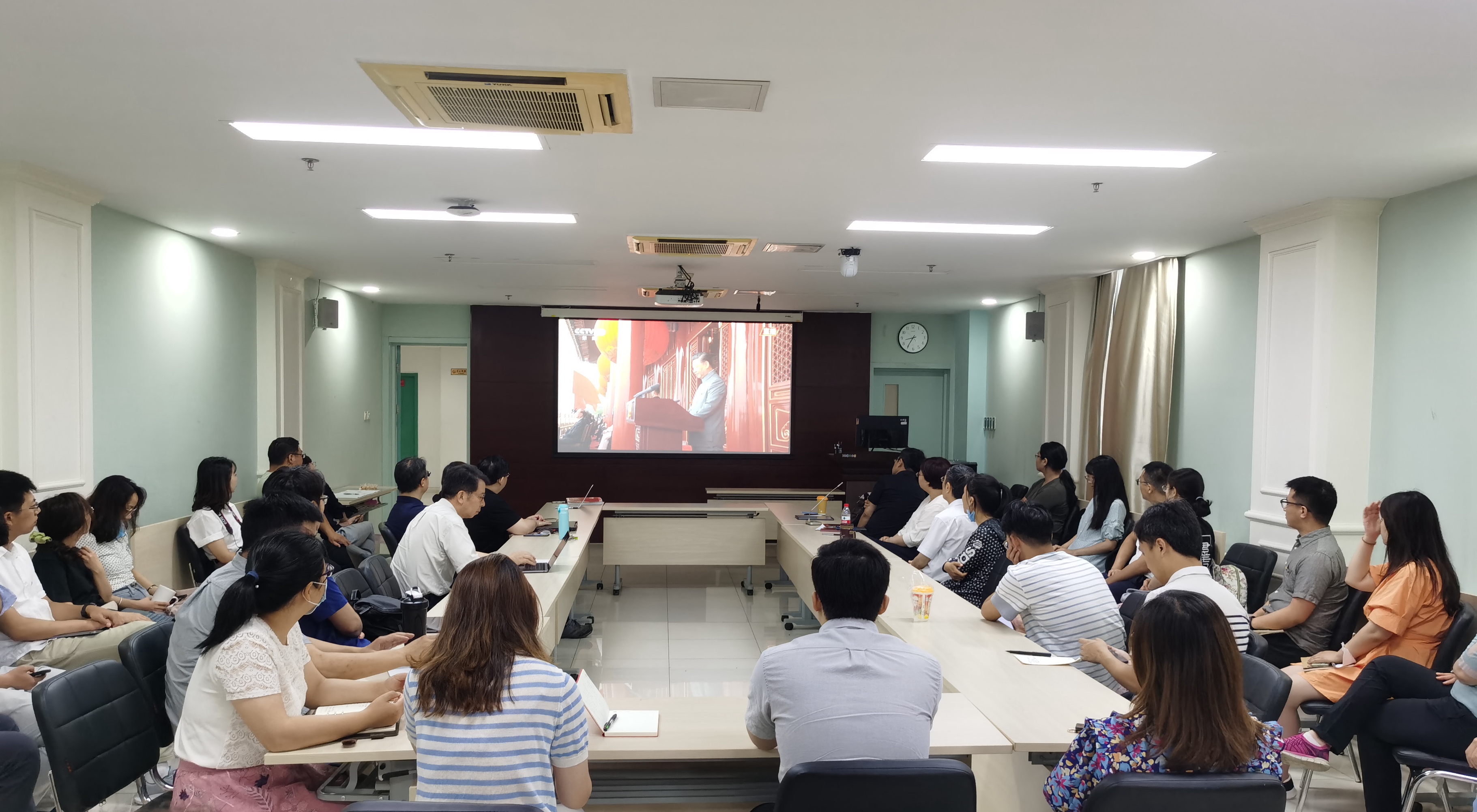 参会师生认真收看庆祝大会,仔细聆听、深入领会习总书记重要讲话精神,大会结束后立刻召开了学习习总书记讲话精神座谈会,师生党员反响热烈。