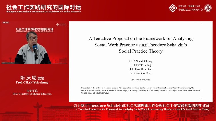 陈沃聪教授就“如何使用Theodore Schatzki的社会实践理论用作分析社会工作实践框架的初步建议”进行了发言。首先,陈沃聪教授分享了他的选题缘由;随后,他对Theodore Schatzki教授进行了一个简要的介绍,在此基础上他分享了Theodore Schatzki的社会实践的理论。陈沃聪教授结合社会实践研究理论对社会工作实践研究的意义进行了深入分析,他认为,在行为改变的领域,分析焦点应该放在实践本身,而不是实践者具体的行为,仅仅关注实践表现是不够的,实践研究还是需要看到实践作为一个实体去理解。在理解实践作为实体的时候,我们需要探讨专业共有、共享的实践观念和意义、知识、技能、材料、设施等要素;并且,活动所涉及的物质性和相应的实践也是相互构成的。这提醒我们对整个实践安排的组合给予同等的关注,以便我们能够更加理解实践。
