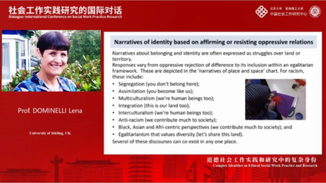 Dominelle教授关注社会工作实践、研究的道德面向与其中复杂身份的突显。她提出西方社会工作伦理长期以来主要基于康德的义务论原则,当下的专业伦理又将性别、环境正义及对边缘群体的影响等也包括进来。然而,不同的伦理原则之间也会产生冲突,伦理困境会随之而生,并且这一困境会在不同文化环境中呈现甚至被放大。我们生活在超多元的社会里,其中有不同的群体、不同的声音。社会工作实践研究者需要倾听不同的声音、不同的观点和不同的意见,特别是要听见被边缘化群体的声音。因此,Dominelle教授多次强调多元身份的重要性,在道德社会工作实践中只有保持这样的敏感性,我们才能真正获得需要的知识。