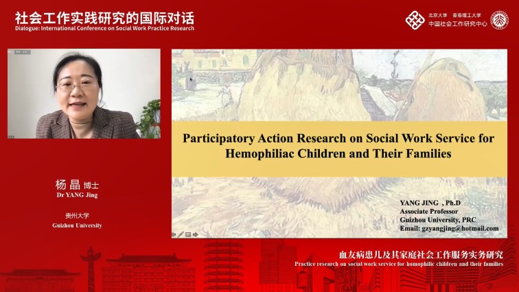 杨晶博士分享了基于血友病患儿及其家庭社会工作服务实务研究,她从血友病的简要介绍和血友病患儿生活处境的揭示出发,为我们展现了他们研究开始的起点和挑战。她通过阶段式的经验分析和行动反思的交织式呈现,向大家清晰地表达了拐点的存在和意义,以及其中社会工作者角色的转变。在整个过程中,社会工作者是能动的主体,服务对象也是积极的行动者,而不是被动的客体。两者间所孕育的是一种互为主体的平等关系。而这也才是具有人文关怀的行动研究、实践研究的真正开始。
