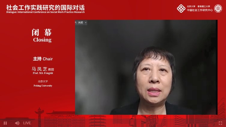 11月28日中午12时许,历时一日半的“社会工作实践研究的国际对话”线上研讨会落下帷幕,闭幕式由北京大学-香港理工大学中国社会工作研究中心联合主任马凤芝教授主持、香港理工大学古学斌博士总结。
