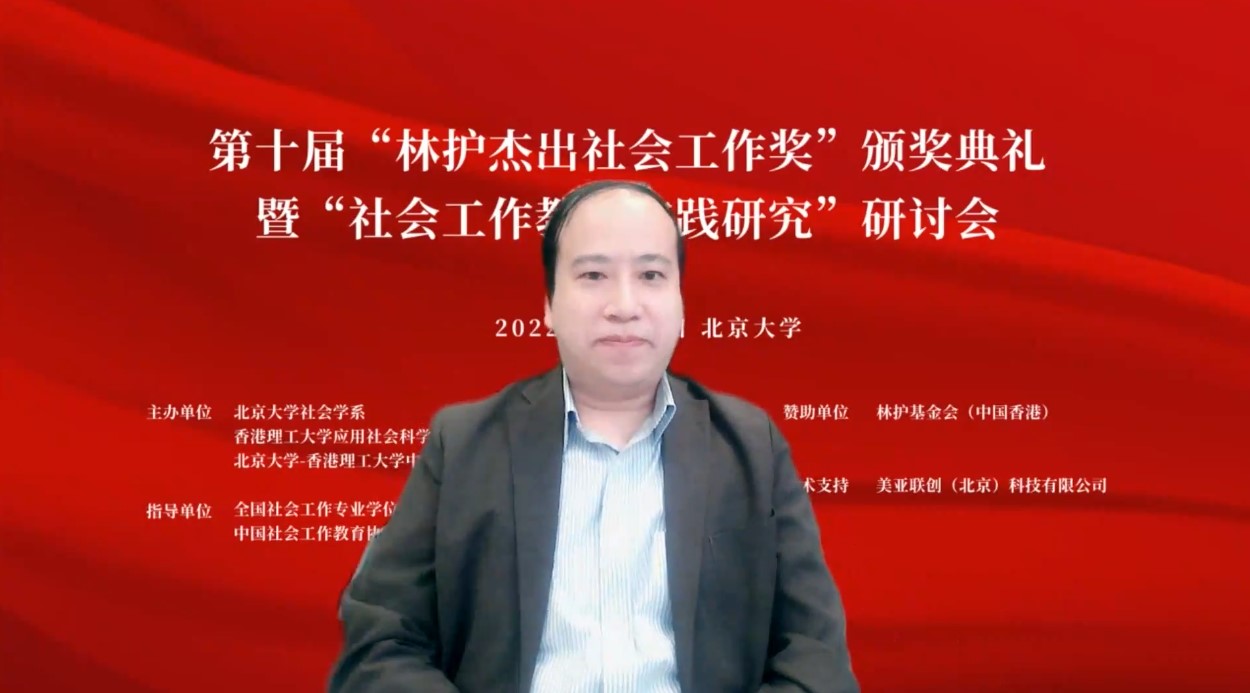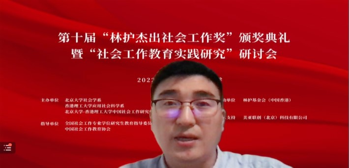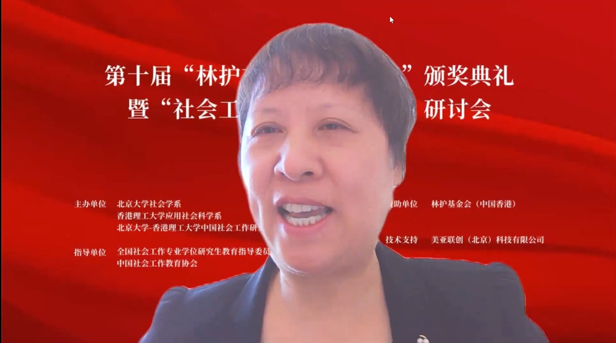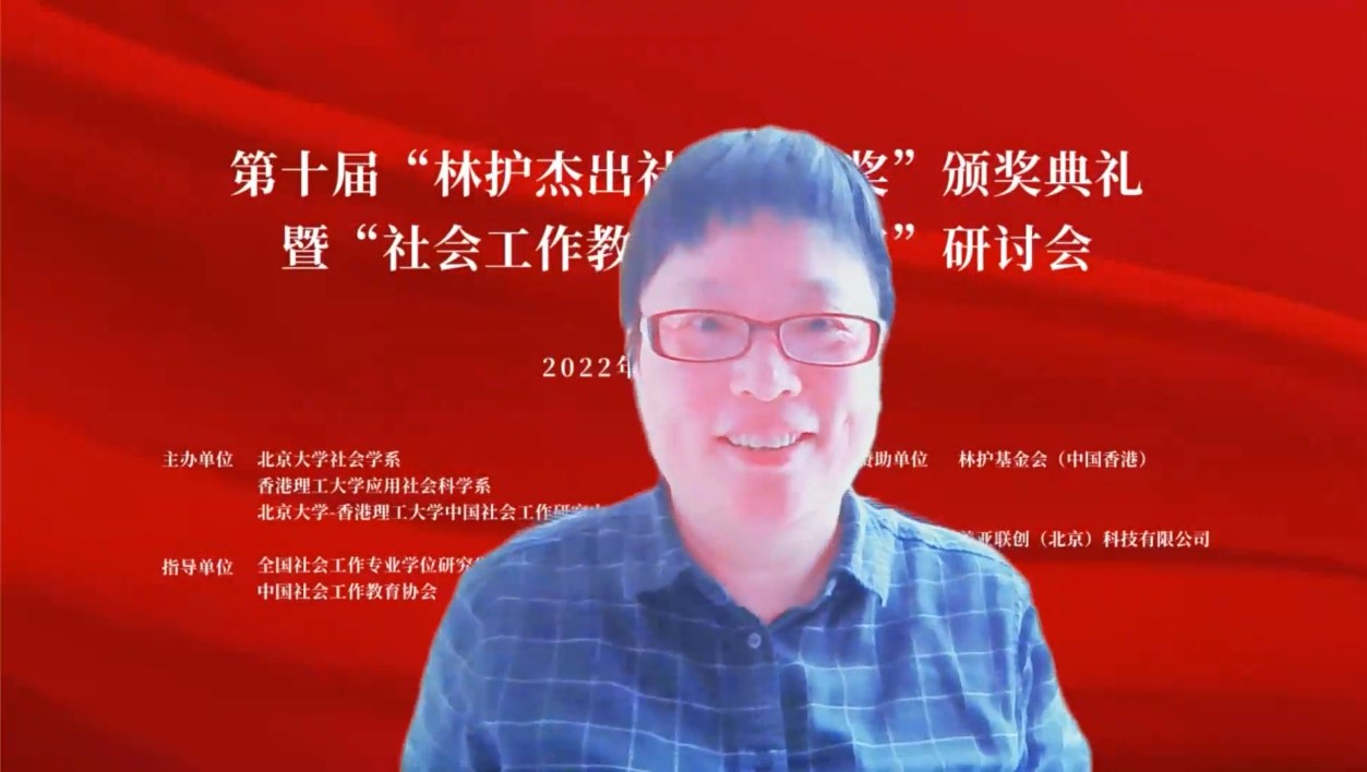 2022年3月26日上午,由北京大学社会学系、香港理工大学应用社会科学系、北京大学-香港理工大学中国社会工作研究中心主办,全国社会工作专业学位研究生教育指导委员会、中国社会工作教育协会指导的第十届“林护杰出社会工作奖”颁奖典礼在线上隆重举办。来自全国社会工作界的专家学者、社会工作实务工作者、历届林护杰出社会工作奖的获奖者、社会工作院校师生等一万人余次相聚线上,共同见证这一荣誉时刻。