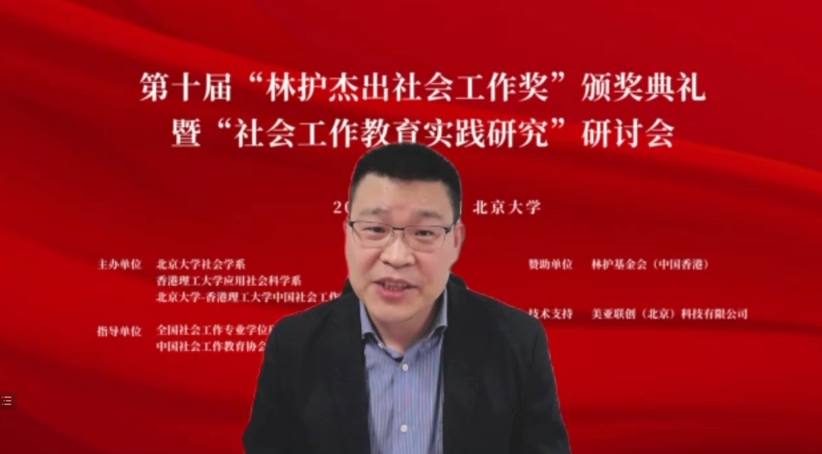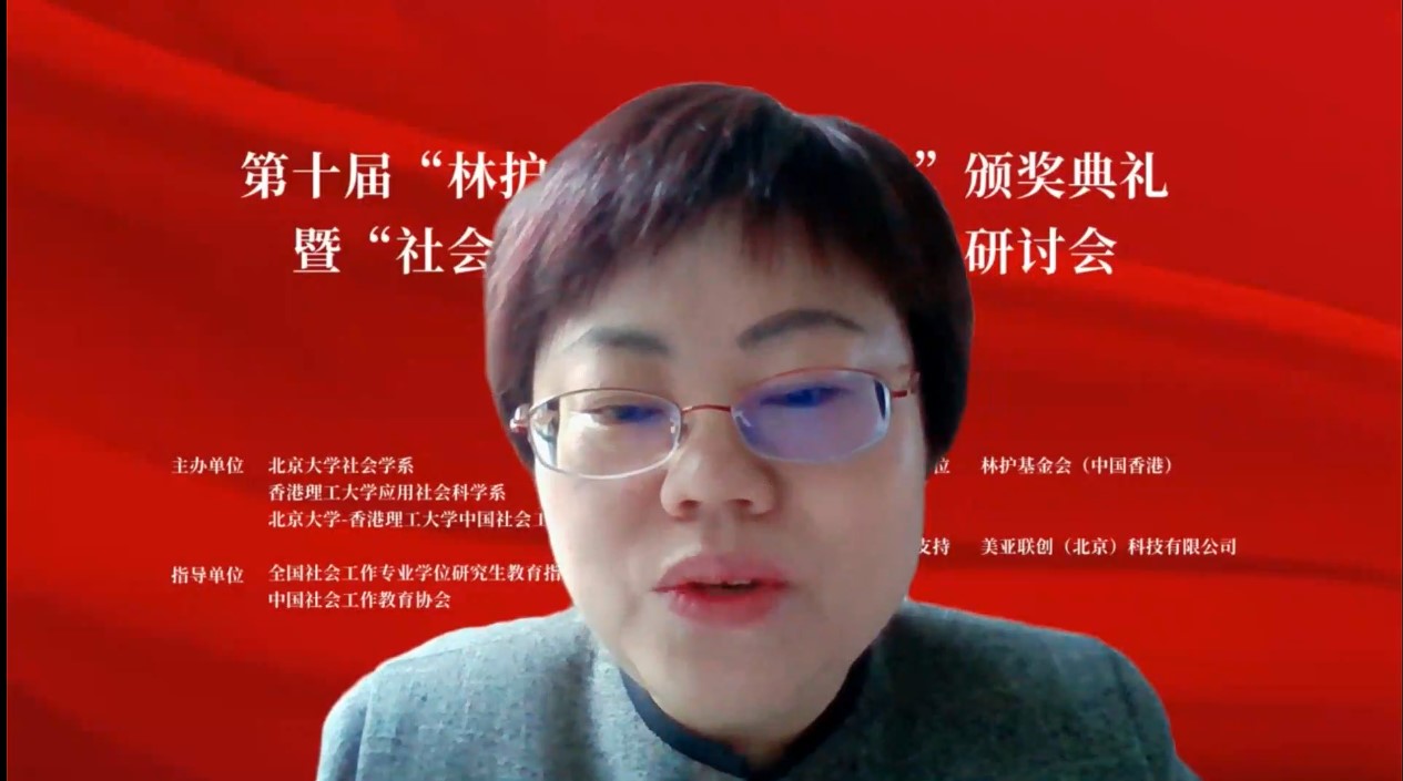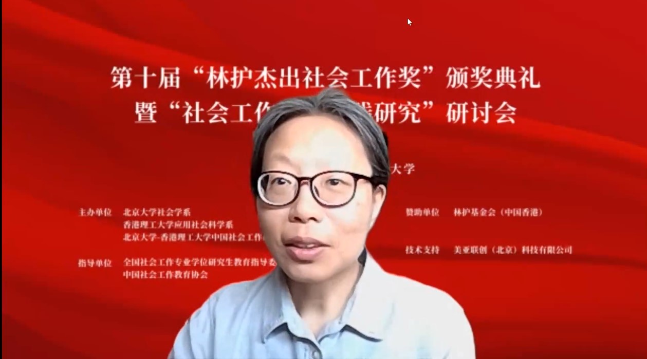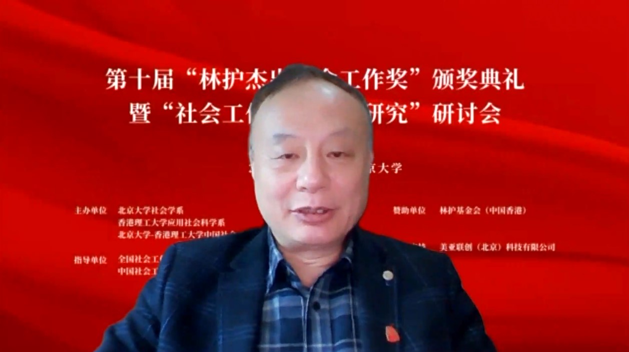 2022年3月26日上午,由北京大学社会学系、香港理工大学应用社会科学系、北京大学-香港理工大学中国社会工作研究中心主办,全国社会工作专业学位研究生教育指导委员会、中国社会工作教育协会指导的第十届“林护杰出社会工作奖”颁奖典礼在线上隆重举办。来自全国社会工作界的专家学者、社会工作实务工作者、历届林护杰出社会工作奖的获奖者、社会工作院校师生等一万人余次相聚线上,共同见证这一荣誉时刻。