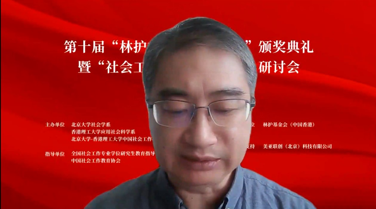 香港理工大学应用社会科学系系主任崔永康教授回顾了林护杰出社会工作奖自设立至今的评选成果,高度肯定了该奖项对于中国内地社会工作发展的意义。最后他希望香港理工大学应用社会科学系与北京大学社会学系继续友好合作,共同研讨与推动全国社会工作的发展,为社会进步与人民福祉做出应有的贡献。