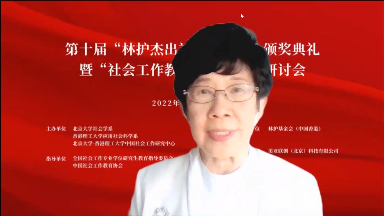 马凤芝教授向以上致辞嘉宾表达了真挚的感谢,作为林护社会工作培训及发展基金项目的第一期执行人,她见证了林护所走过的第一个十年。值此林护社会工作培训及发展基金暨“林护杰出社会工作奖”十周年之际,特别制作了林护社会工作培训及发展基金项目暨“林护杰出社会工作奖”十年纪念视频和纪念文集。最后,通过有奖竞答环节,线上众多参会者再次重温了林护的十年发展历程。