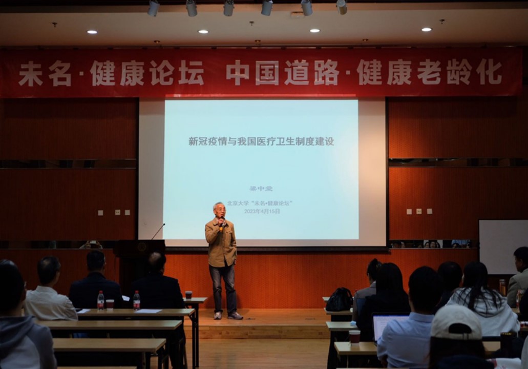 2023年4月15日下午,未名健康论坛于邱德拔体育馆多功能厅举行,本次论坛围绕“中国道路健康老龄化”议题开展,由李建新、郑真真教授主持,梁中堂、杜鹏、王金营、谭克俭教授作主题分享,李建民、陈友华、童玉芬、张文娟教授对主题分享进行点评,陆杰华教授作总结。参加本次研讨会的还有来自北京大学、中国人民大学、首都经济贸易大学等高校的硕士生、博士生同学。