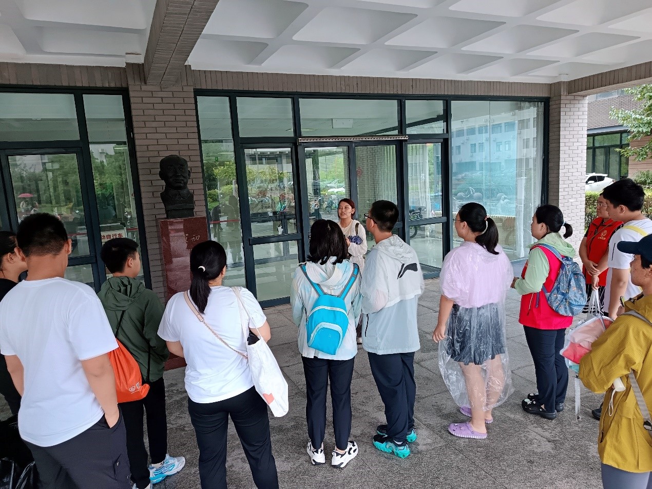 在当天的活动中,社会学系2023级社会工作专业硕士生张萌萌热情地担任导览员,带领社区青少年及家长参观校园。首先,张萌萌带领大家在系楼瞻仰马寅初与费孝通先生的雕像,分享了两位杰出学者对中国社会学事业的巨大贡献。通过展示楼道中的展板,她讲述了北京大学社会学系悠久的历史、光荣的传统,以及追求真理、服务社会的精神品格。