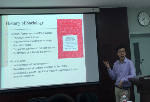 陈汉辉教授在谈到知识社会学的“中国语境”时,介绍了自己在2017年出版的一本书——《Chinese Sociology》,这本书从西方早期的影响出发,在中国的语境中勾勒出这门学科曲折的道路,在20世纪30 -40年代学科的制度化,与社会主义的矛盾关系和文化大革命时期的中断,在20世纪80 -90年代复兴,当代中国社会学研究中全球化与本土化的双重趋势。陈汉辉教授认为,尽管有坚持不懈的本土化努力,西方模式仍然具有广泛的影响力,中国社会学的历史被证明是一个被多重机缘(contingencies)所塑造的过程,在这个过程中,西方社会学理论,尤其是美国的社会学传统,也在适应中国不断变化的背景。
