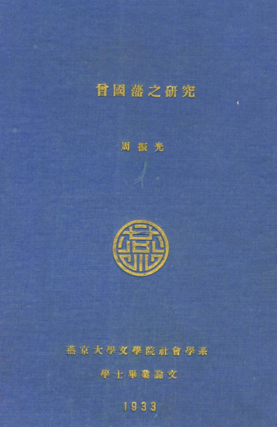 燕京大学社会学一直重视人物传记研究,这与吴文藻和杨开道两位先生的研究兴趣和研究方法密切相关。由吴文藻引入的芝加哥社会学派,强调社区研究与个案方法,重视对具体人物的个案研究,对燕大社会学产生了深刻影响。之前刊载过的严景珊、周叔昭等的毕业论文,就鲜明地体现了这一研究风格。杨开道先生对农村自治的研究则非常重视农村中的自治人才以及社会领袖,杨先生对中国历代领袖的研究也由此生发。1931年,杨开道在《社会学刊》上发表《中国领袖研究:楚项羽》,1932年发表《中国领袖的研究:汉高祖》。同时,他还在燕京大学社会学系开设相关课程,指导学生从事对中国人物的具体研究。所以此一时期有林耀华的《严复研究》、黄文宗的《孙中山之社会思想》等学生论文。此次刊载的周振光《曾国藩领袖之分析》,更是遵循着杨开道研究中国领袖的思路。