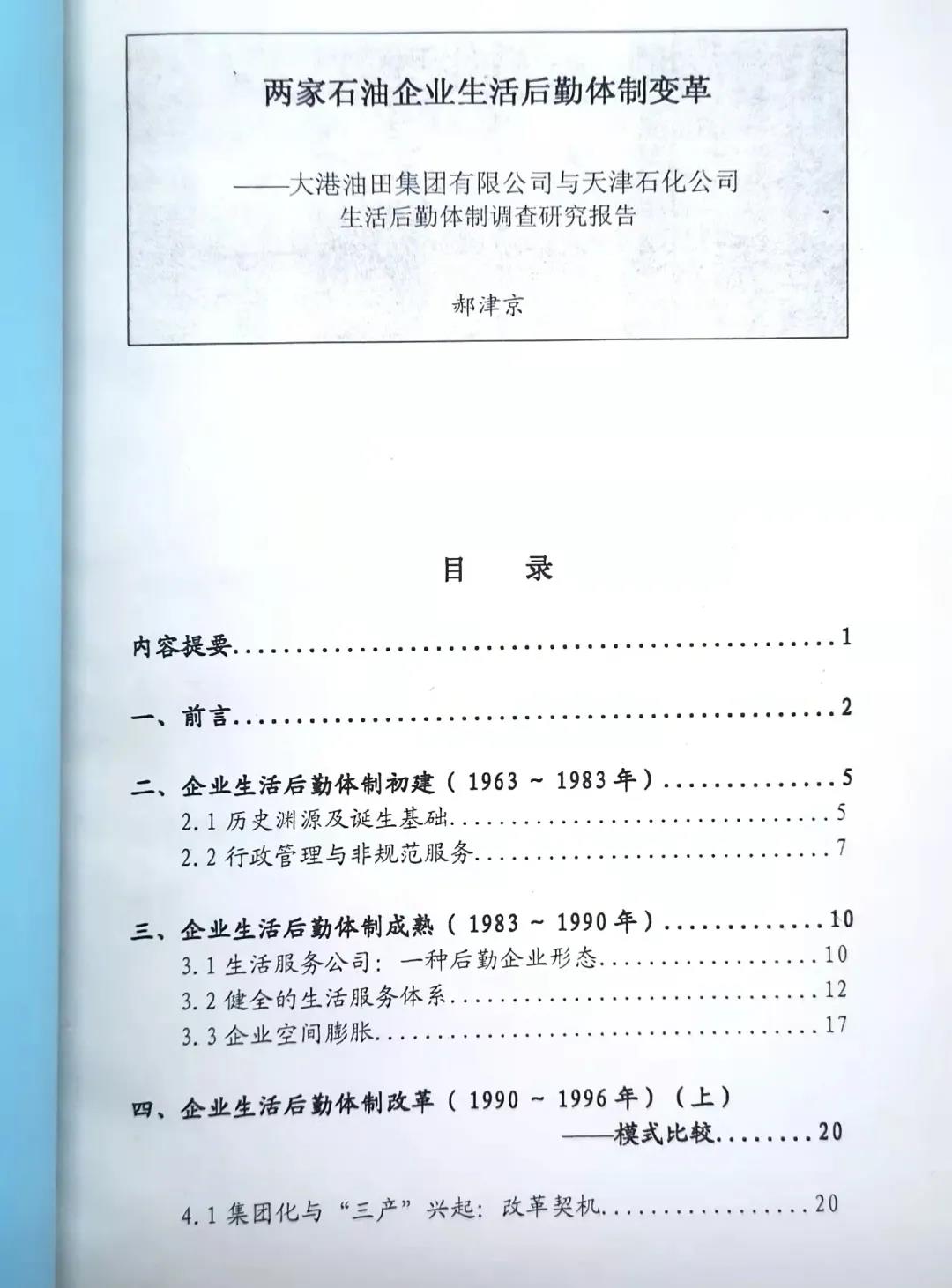文字节选自1996年第五届“挑战杯”获奖作品《两家石油企业生活后勤体制变革:大港油田集团有限公司与天津石化公司生活后勤体制调查研究报告》。