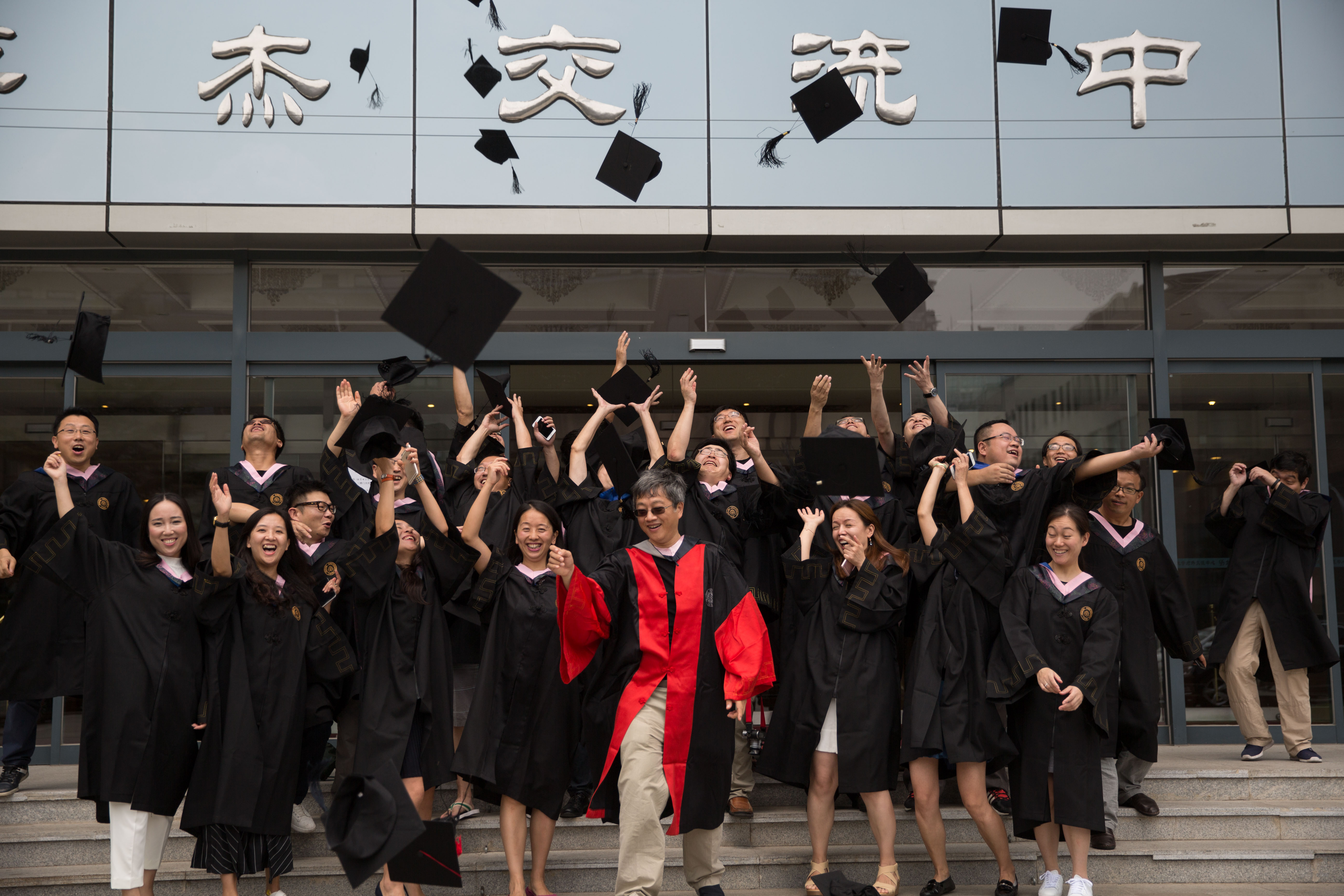 座谈会后,诸位同学披戴上学士服和学士帽,与李猛老师合影一张“毕业照”。在学士帽飞扬的一刹那,年近不惑的诸位同学再度青春飞扬、豪情激荡。